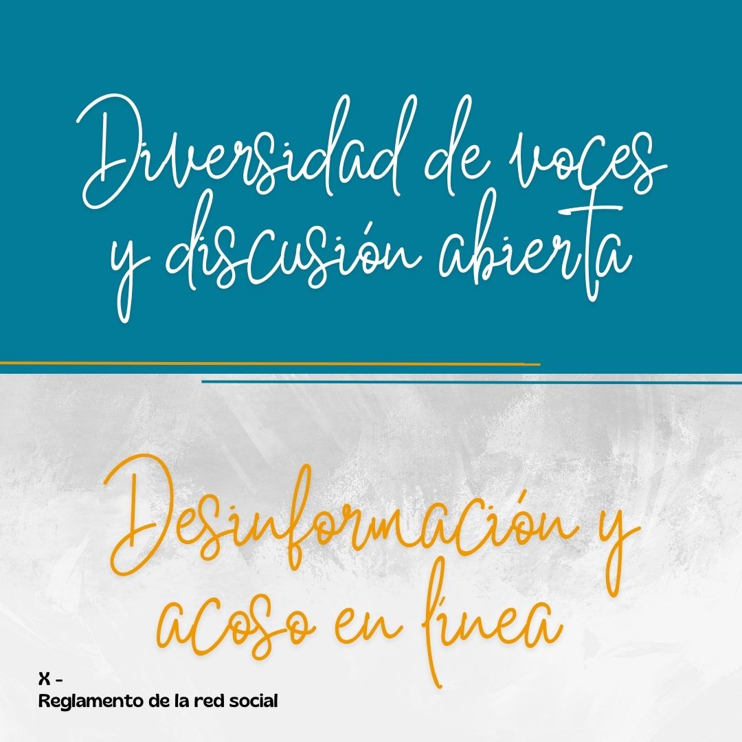 En cuanto a X, “El propósito es estar al servicio de la conversación pública. La violencia, el acoso y otros tipos de comportamiento similares desincentivan a las personas para expresarse, lo que finalmente reduce el valor de la conversación pública mundial. Nuestras reglas buscan garantizar que todas las personas puedan participar en la conversación pública con libertad y seguridad”.